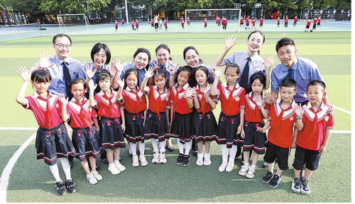 5月26日,重庆检察未成年人保护工作团队代表在北碚区两江名居第一小学开展校园普法活动后与学生合影。 新华社发