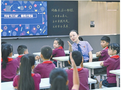 9月1日,重庆检察未成年人保护工作团队代表龚珊在渝北区巴蜀小学给孩子们讲授法治知识。 新华社发(刘力摄)